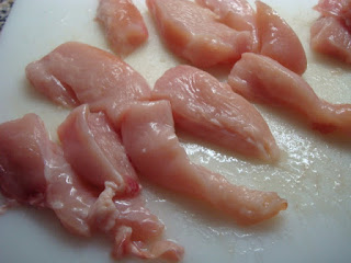 2-3 куриные грудки, нарезать полосками приблизительно 3 см(шириной)