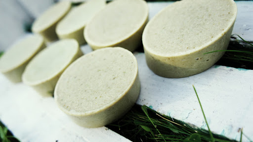 Мыло на соке крапивы с мацератом крапивы и розмарина на оливковом масле;