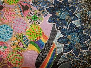 Панно на холсте 30 х 30 см. Сделано в смешанной технике на холсте. Декупаж, роспись акрилом, акриловыми контурами.
