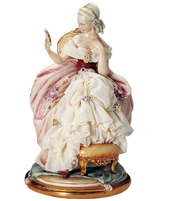Свое название кружевной фарфор получил благодаря легкости и изяществу, а также сходству с настоящим плетеным кружевом. Чаще всего кружевные фарфоровые статуэтки предстают перед нами в виде девочек и девушек, нередко балерин или танцовщиц в пышных, воздушных платьях, которые состоят из тончайшего кружева с мелкими-мелкими дырочками. А специально подобранные нежные цвета, такие как розовый или голубой, делают эти фигурки еще более легкими, нежными и невесомыми. За свою уникальность и необычность они высоко ценятся во всем мире.