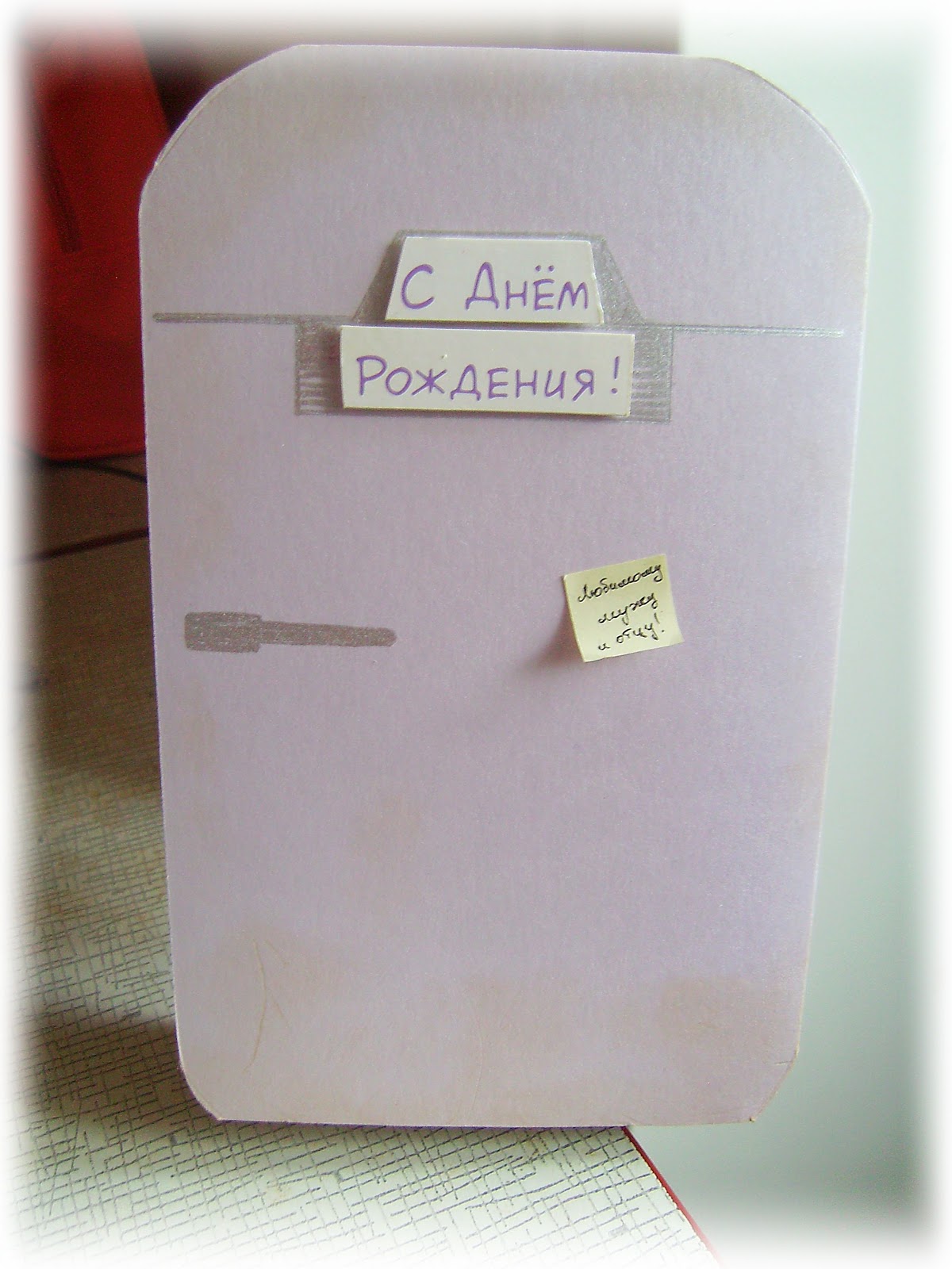"Как знаете, первое апреля - день смеха. У нас в городе проводится Юморина: карнавальные шествия, концерты, толпы народу на улицах и т.д. Но для меня этот день знаменателен не праздником смеха, а тем что в этот день родился мой любимый мужчина, мой муж. Ко дню его рождения я подготовила специальную открыточку. Он по профессии холодильщик и очень любит свою работу. Поэтому открыточка соответствующая)) Догадываетесь о чем я ?)))