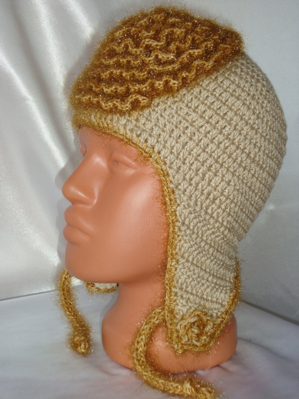 Шапочка выполнена крючком из итальянской мериносовой шерсти с добавлением шелка. Без швов. Шапочка декорирована цветком из фантазийной пряжи. Ушки так же декорированы маленькими фантазийными цветочками. Внутри к шапочке пришит вручную мягкий трикотажный подклад. Шапочка имеет завязки, которые могут выполнять и декоративную функцию, т.к. выполнены из "искристой" декоративной пряжи. Р-р 49-50