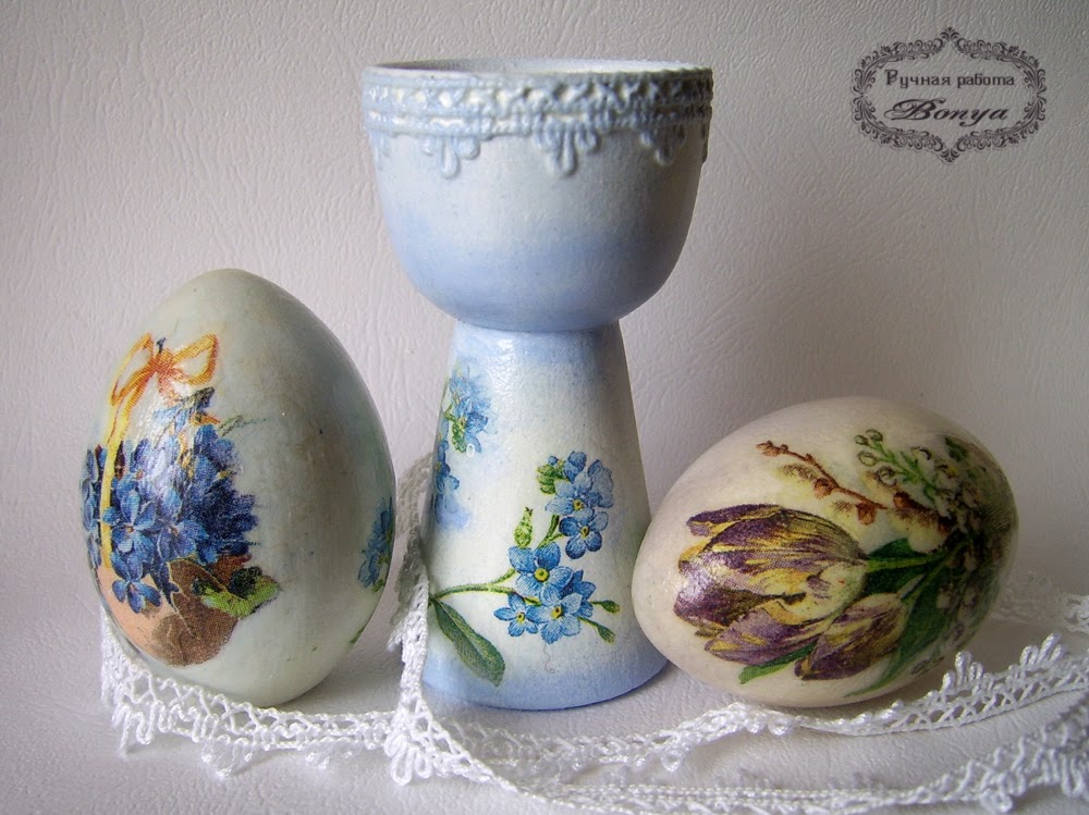 Это мои первые пасхальные яйца. Давно любовалась на работы мастериц декупажа и мечтала сделать свои пасхальные яйца. Наконец-то у нас в магазине появились деревянные заготовки! Вот моя «проба пера»