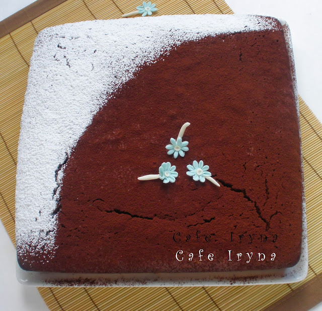 Когда торт готов, сразу открыть разъёмный борт, снять бумагу и перевернуть торт на блюдо.
