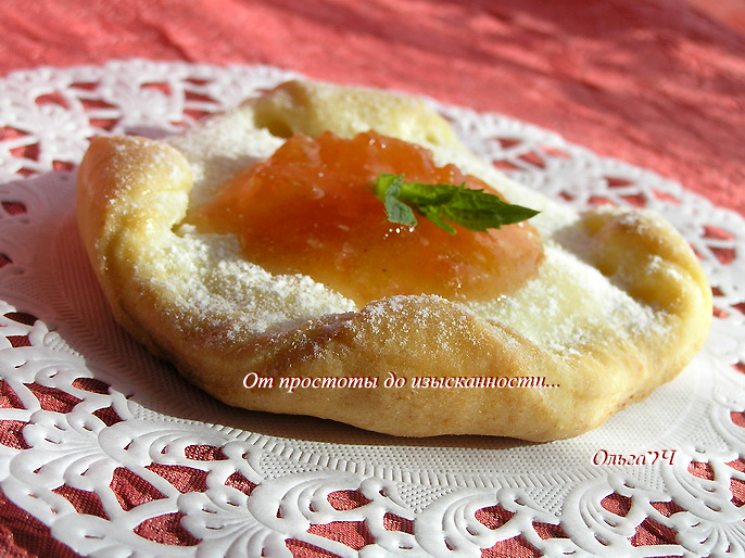 Готовое тесто разделяем на 7-8 равных частей, каждую из которых расплющиваем в не очень тонкий пласт, на середину кладем 1-1.5 ст л начинки, тщательно защипываем, формируя круглую булочку.