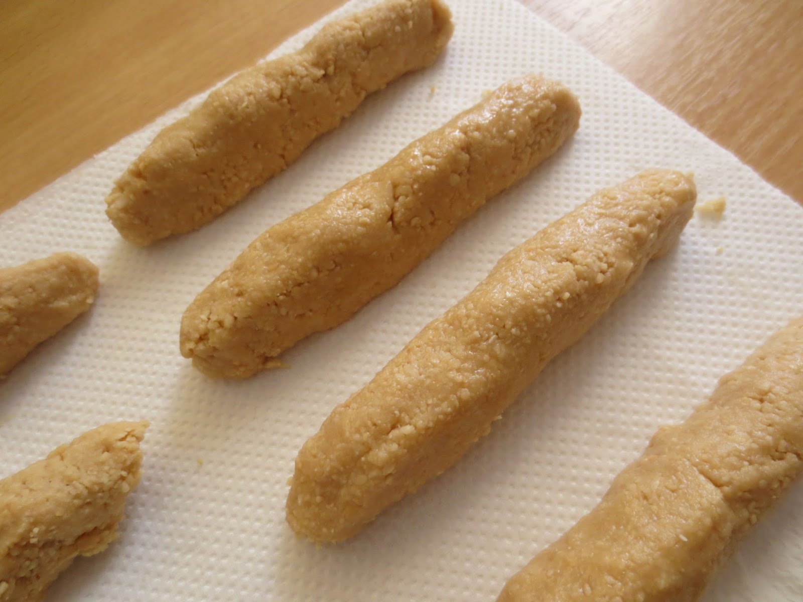8. Теперь, внимание: ответственный момент! Очень важно действовать оперативно, чтобы крем не успел разморозиться. Каждый кусочек тщательно обвалять в муке, затем окунуть в белки.