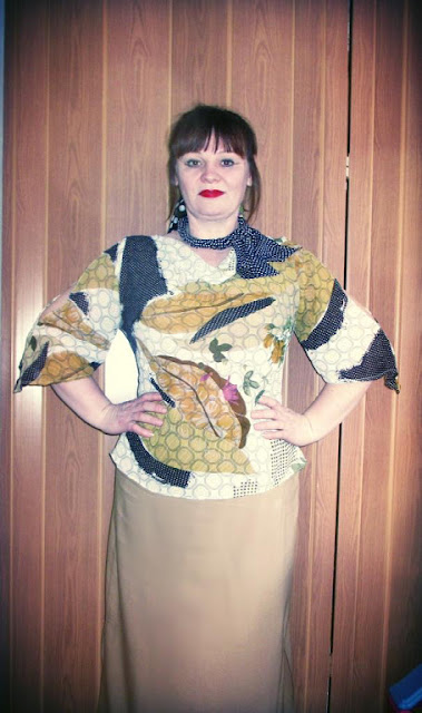 А вот эта блузочка от бабуськи-мне действительно понравилась. Но размер не мой.В бёдрах немного напряжённо, но хуже всего -под мышками врезалось...