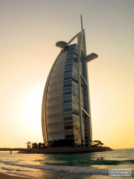 The Burj al-Arab Hotel - самый большой отель в мире. Считается единственным семизвездочным отелем в мире. Он стоит на искусственном острове.