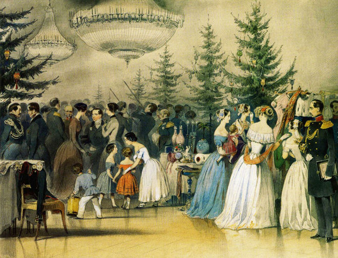 Первая публичная елка, по свидетельству современников, была установлена в 1852 году на петербургском Екатерингофском вокзале.
