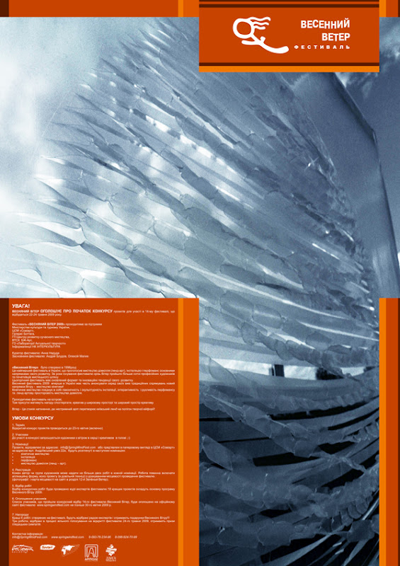 ВЕСНЯНИЙ ВІТЕР оголошує про початок конкурсу проектів для участі в 14-му фестивалі. Який відбудеться 22- 24 травня 2009 року.