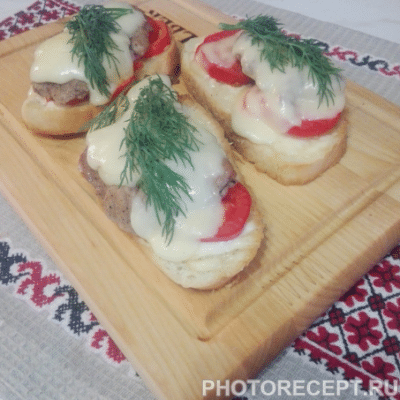 Из указанного количества ингредиентов получается 8 больших бутербродов. Закуска получается сытной и прекрасно «уходит» под водочку :-).