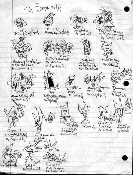 <a href="https://www.liveinternet.ru/community/final_fantasy_fans/post9124583/">И вдогонку.</a><br/> Для тех, кому не видно подписи. 1. Папочка. 2. Мамочка. 3. Дядя Валентайн. 4. Папочка и дядя Валентайн не любят друг друга. 5. Мамочка и дядя Валентайн любят друг друга. 6. Поэтому папочка застрелил дядя Валентайна. 7. Папочка думает, что мамочка принадлежит только ему. 8. А мамочка - нет. 9. Мамочка кричит папочке "нет!" 10. Папочка орет. 11. Злооой папочка! 12. Мамочка и папочка растят меня в ванночке. 13. Дженова убивает мамочку. 14. Я расту большой и сильный! 15. Но я не знаю, кто мой папочка. 16. Поэтому я смеюсь над папочкой. 17. Злой Клауд. 18. Клауд убивает меня... <a href="https://www.liveinternet.ru/community/final_fantasy_fans/post9124583/">Читать далее...</a>