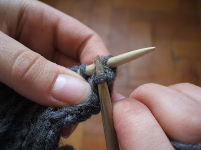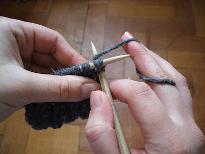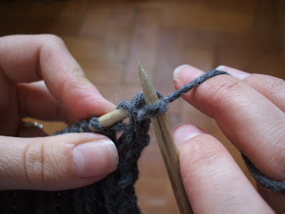 Now, insert the left needle in the back of the stitch you just knitted, you should have this sort of thing...