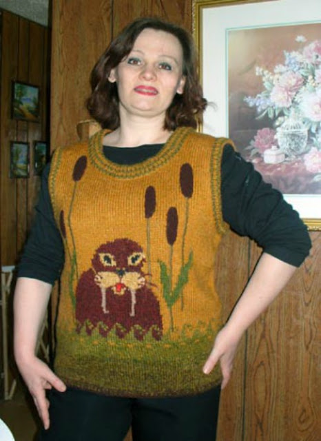 ЖИЛЕТ С ИНТАРСИЕЙ-''БОБЁР В КАМЫШАХ''