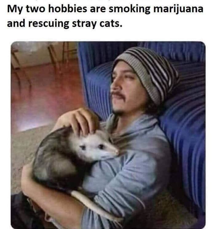 Мои два хобби это курить марихуану и спасать бездомных котов.