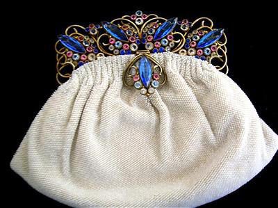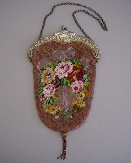 Многочисленные бисерные сумочки, которые на первый взгляд можно принять за вышитые, на самом деле связаны крючком или на спицах. Первый способ был более распространен и имеет более долгую историю. Скорее всего, бисерное вязание крючком было изобретено в Германии, где оно приобрело широкое распространение. Эта кропотливая работа начиналась с нанизывания на нить в строго определенном порядке — согласно рисунку — разноцветных бисеринок.