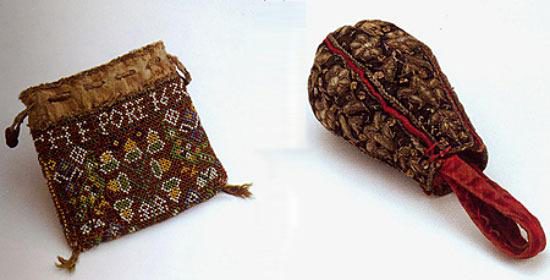 Небольшими сумочками продолжали пользоваться, пожалуй, только завзятые игроки и любители табака. В качестве "игорных" сумок использовали кошели с твердым дном — чтобы их можно было ставить на стол. В них хранили кости и карточные колоды. Как и сумочки для табака и курительных принадлежностей, они были затейливо украшены.