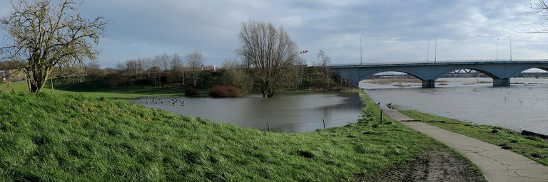 The Katerveer was a ferry service across the IJssel to the west of Zwolle that connected Overijssel with Gelderland. History goes back to the tenth century. Around 1240 it was a paid ferry service entitled "Cothenveer". Zwolle became the owner of the ferry house and the associated stable in the fifteenth century. The ferry house used to be on the site of the white house on the left (1859) and just before that the road runs to the river. The old IJssel bridge, called Katerveer, is derived from this ferry service. This bridge from 1930 is one of the first bridges in the National Road Plan from 1927. The bridge has a steel center bridge and two concrete bridges with four arch ribs each. The bridge was blown up and rebuilt twice during the Second World War. Characteristic on the old IJssel bridge near Zwolle is the color scheme in green and blue.
