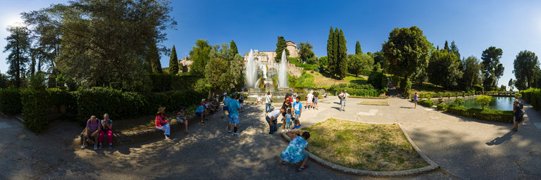 The biggest fountain at Villa d'Este, the famous 16th century palace in Tivoli, incorporates parts of a cascade designed by the great 18th centrury sculptor Gian Lorenzo Bernini. The present mammoth jets, designed by architect Attilio Rossi, were built in the 1930s.