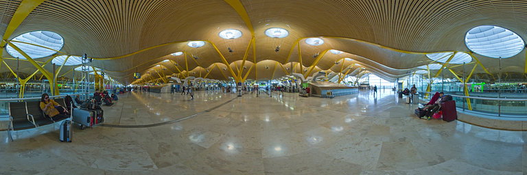 Beautiful airport ... love the architecture ! We were here sometime April 2019. From wikipedia : Adolfo Su'arez Madrid–Barajas Airport (Spanish: Aeropuerto Adolfo Su'arez Madrid-Barajas (IATA: MAD, ICAO: LEMD), commonly known as Madrid–Barajas Airport, is the main international airport serving Madrid in Spain. At 3,050 ha (7,500 acres) in area, it is the second largest airport in Europe by physical size behind Paris–Charles de Gaulle Airport. In 2018, 57.9 million passengers used Madrid–Barajas, making it the country's busiest airport as well as Europe's sixth busiest... https://en.wikipedia.org/wiki/Adolfo_Su%C3%A1rez_Madrid%E2%80%93Barajas_Airport