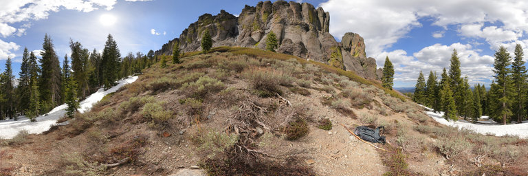 Gazing at impressive andesite spires along the side of Gearhart Mountain, Oregon. These formations tower 200-300 above w/ a small waterfall falling down the middle.