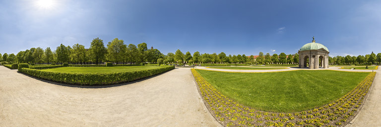 The Hofgarten (Court Garden) in Munich is between the Odeonssquare and the Bavarian Staatskanzlei. In summer this is a famous place for people to sit in the beergarden next the Odeaonssquare, play boule, or dance in the Dianatemple in the center of the garden.