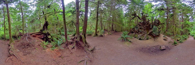 A crossroad on the trails in the old growth forest in Pt Defiance Park, Tacoma WA.