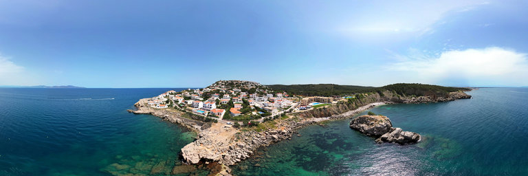 Aerial view of the Punta del Ferro, Illa Mateua and Punta Montgo, in l'Escala, Catalunya