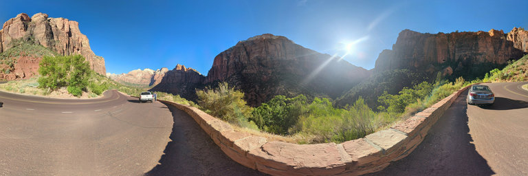 View from a pull off while driving the Zion-Mount Carmel Highway inside Zion National Park, July 2022