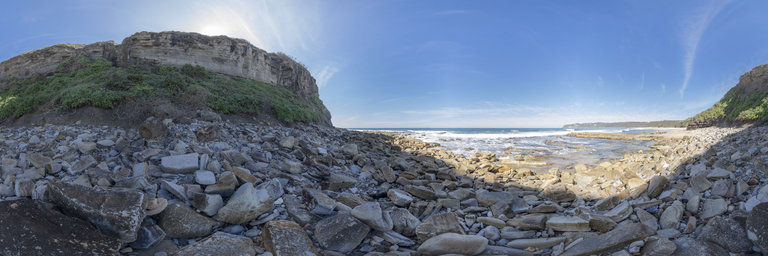 Little Redhead Point is the headland at the northern end of Dudley Beach near Newcastle, Australia. The cliff section exposes part of the Newcastle Coal Measures, including a coal seam near the base of the cliff (Victoria Tunnel Seam), various units of sandstone and conglomerate, as well as a volcanic ash layer (tuff) that forms the wave-cut platform just to the east of this viewpoint.