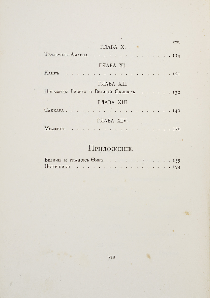 Санкт-Петербург, 1911 год, Типография А. Бенке.С 28 акварелями А. Львовой.Типографский ледериновый переплет. Сохранность хорошая. Издание посвящено путешествию автора по Египту и истории этого государства.Можно сказать, что эта книга представляет собой реконструкцию жанра путевых заметок, столь популярного в XVIII - нач. XIX вв. Историческая хроника перемешивается с личными впечатлениями автора и его спутницы, нашедшими отражение не только в тексте, но и в иллюстрациях."Предлагая вниманию благосклонного читателя настоящую мою книгу, я нахожу нужным сказать несколько предварительных слов о ней. Книга эта, ближе всего, подходит к тому роду литературы, который в теориях словесности определяется термином "путешествия". Фундамент книги - мои личные впечатления, и на этом фундаменте сделаны исторические надстройки. Мне казалось не бесполезным познакомить широкую публику с чрезвычайно интересной и поучительной историей Египта, о которой неспециалисты у нас, в России, едва ли что-нибудь знают (не считая того, что изложено в учебниках истории). В этой (исторической) части своей работы широко пользуясь иностранными источниками, я не делаю, однако, подстрочных ссылок на них, ибо для книги, не претендующей на роль научного исследования, это лишнее, а для читателя примечания были бы только помехой. Особенно полезными для меня оказались замечательные труды проф. Масперо и Навиля, а также прекрасная история Египта Брестеда. Кроме того, я пользовался исследованиями, появлявшимися в различных специальных изданиях и новыми очерками Масперо, которые продолжают печататься в газетах: "Journal des Debats" и "Le Temps". А. Львов. 1 Сентября, 1910 г. Издание не подлежит вывозу за пределы Российской Федерации.