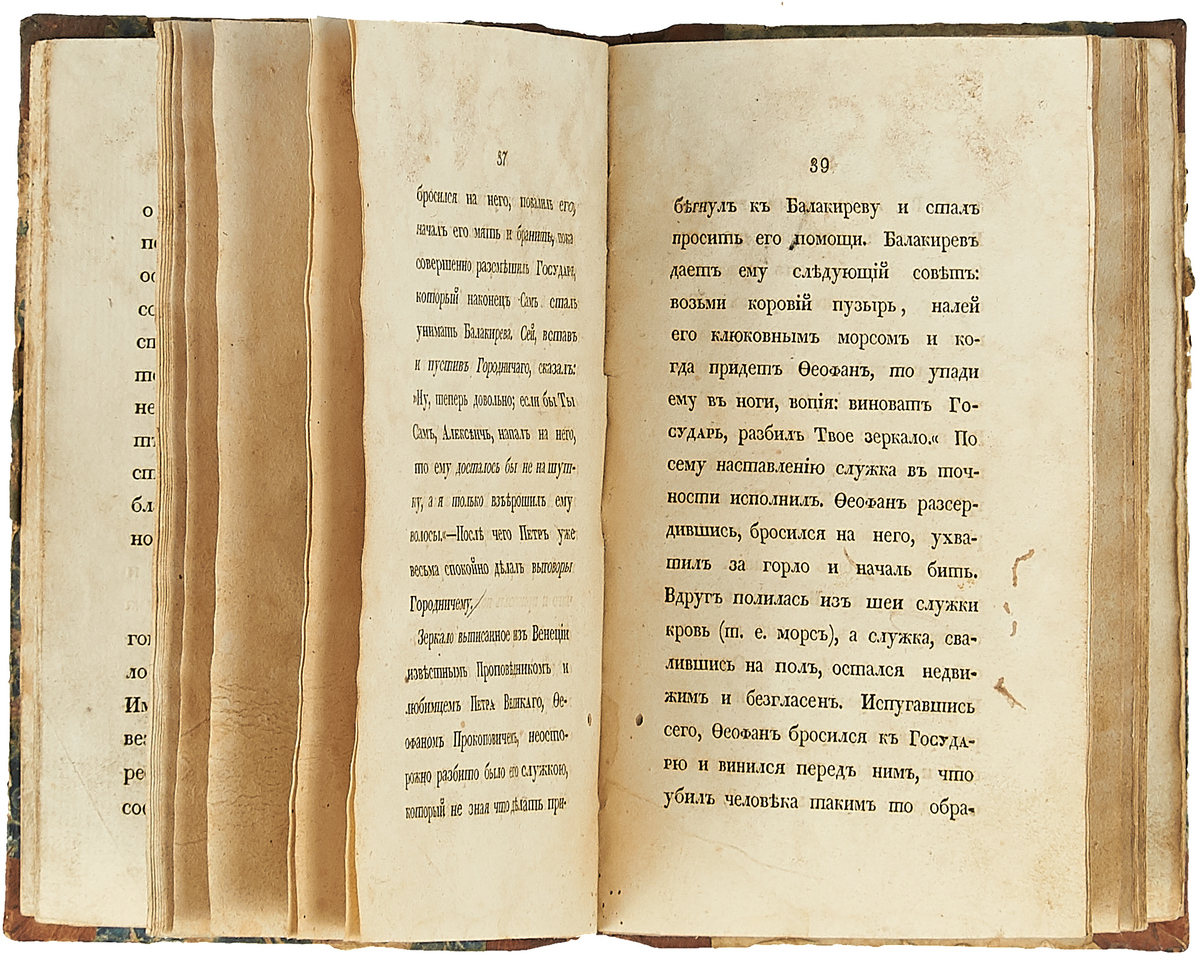Москва. 1833 год. Типография Н.Степанова.Владельческий переплет. Сохранность хорошая.Вашему вниманию предлагается "Анекдоты о Балакиреве бывшем при дворе Императора Петра Великого шутом".Не подлежит вывозу за пределы Российской Федерации.