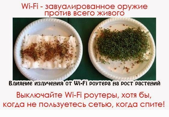 Пять учениц одной из датских школ поместили шесть лотков с семенами кресс-салата в комнату с двумя маршрутизаторами беспроводного интернета, а еще шесть поставили в обычной комнате без доступа к Wi-Fi. За 12 дней эксперимента семена в шести лотках, стоявшие в изолированной комнате, росли нормально, в то время как семена, на которые воздействовало излучение от роутеров, вырасти не смогли Больше того, некоторые из ростков становились коричневыми и умирали.
