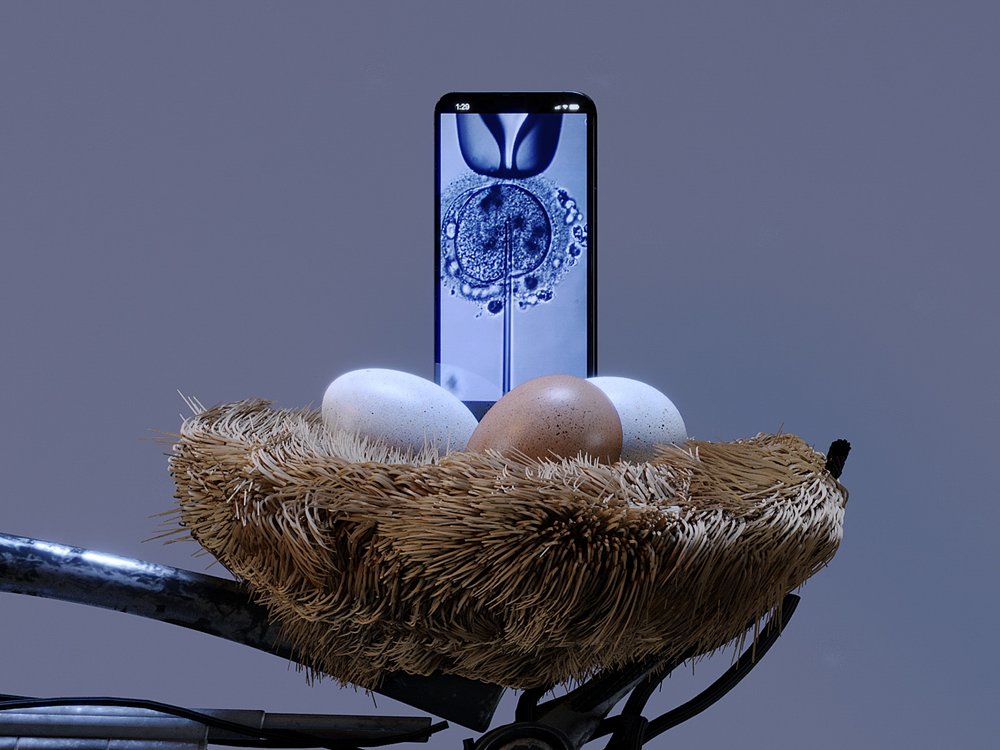 For the last scene, the artist has acquired an Intracytoplasmic sperm injection video shot by a camera from a microscope lens (In Vitro Fertilization). IVF is the most effective form of assisted reproductive technology to date.