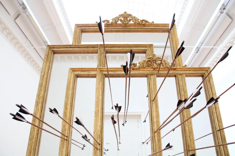The Idea for this artwork came to me in two stages. Whilst I was laying in bath, I saw in my mind three overlapping mirrors. This image ignited my curiosity but that alone didn’t feel complete. I don’t remember exactly how the second part of the idea came to me but I was laying in bath again. This time the thought of arrows with black and white feathers shot in overlapping gold frames with silver surfaces came to my mind. This idea was very exiting for me because I could see the symbolic, mythological and metaphorical references in it. When I was making the actual artwork and thinking about it I was feeling very inspired. “This work needs to exist”. For me, the whole process of receiving the idea, making it (in secret) and then finally exposing friends and family to it for the first time, was a very satisfying experience.