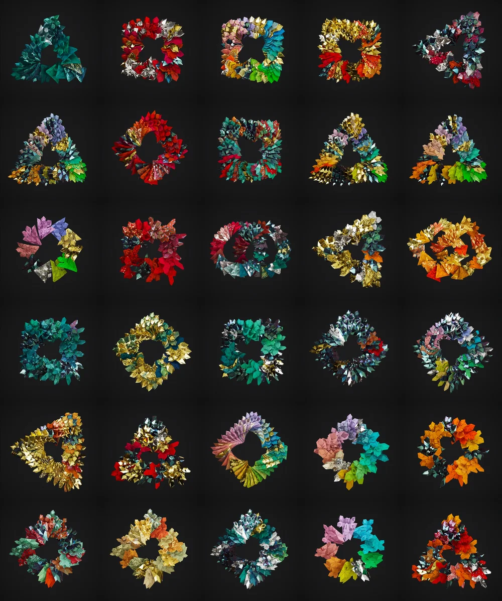 Upon minting, each Life in Our Minds NFT features a small group of Boids, 3D bird-like origami objects. The visual traits of any given Life in Our Minds NFT are initially generated and evolve according to the content of its owner’s wallet, among other factors. The longer a Life in Our Minds NFT remains in a single collector’s wallet, the rarer and more elaborate its formal characteristics become: the number of Boids may increase, and their formations and decorative patterns may change. These interactive, 3D video NFTs are distinguished by their continuous development, which is achieved through the highly complex and inventive technological processes of the Life in Our Minds collection.