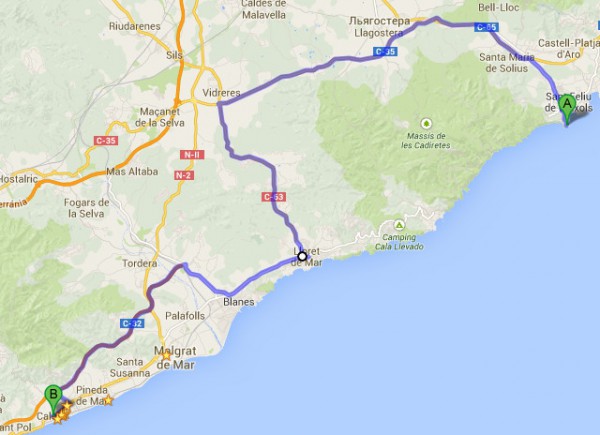 Вчера решил обратно поехать через Google Navigator, так он мне ухитрился проложить трассу вот так, через Льорет-де-Мар.