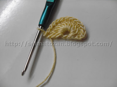 Дальше вяжем так же, только оранжевые ниточки "подбираем"