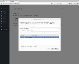 However, there's still new stuff in this release. Olga T Park contributed a backport from later Firefox versions to fix saving passwords in private browsing, and I also finished fully exposing support for site specific user agents. This was quietly reimplemented in FPR17 for interested users, but now that it's getting more and more necessary on more and more sites, I have made the feature a visible and supported part of the browser interface. Instead of having to enter sites and strings manually into about:config, though you still can, you can now go to the TenFourFox preference pane,