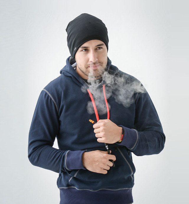 Vaprwear has a vaping chamber in the central pocket that feeds smoke out through the drawstring around the hood; they cost about $100 each, in a variety of styles. No word on washing instructions.