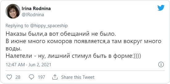 Когда один из пользователей написал ей: «Если что-то не можешь сделать, то не обещай», Роднина ответила: