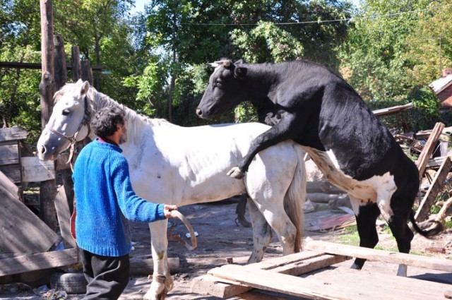 Звонок. Из оттуда. " Ай, уважаемый, приедь скорее, у коровы матка выпала!" Это беда, да. Давно выпала? Ночью. Чего ж ночью не позвонил? А увидели утром. Пихали обратно всем кагалом ( а цыгане, кстати, иногда вполне себе сами управляются со сложными ветеринарными манипуляциями - гены), не запихали... Ну, Василий, вот это тебе в лишнюю сотню обойдётся... Прыгаю в машину, лечу. Прилетаю. Встречают шумно, правда без медведей и гитар - тянут в коровник. Лежит коровка, матка кровавым навозным мешком из-под хвоста. Это - полбеды... Беда - рядом стоящая корова из этой матки задними ногами уже квашню сделала. Фарш практически... Вася, ты охуел? Почему вторую корову не отвязал сразу? Вася чешет репу - и жене с разворота - бац! - в челюсть. Ты чего не отвязала?! Та ему начинает верещать на цыганском с русскими матами, типа, не виноватая я... Ладно, Василий. Варианта два - или я щас то, что осталось от матки удаляю и корова ещё поживёт - или бери нож и втирай его своей корове в области шеи... Встречный вопрос радует - а если матку отрежешь - телится она когда сможет? Героически сдерживая ржач, говорю - да никогда, Васёк... Нечем ей телиться-то будет... Он опять буцкает жену в череп, вежливо предлагает мне помыть руки, рассчитывается за вызов... Уходя, вижу как пошёл Вася в коровник со штык-ножом...