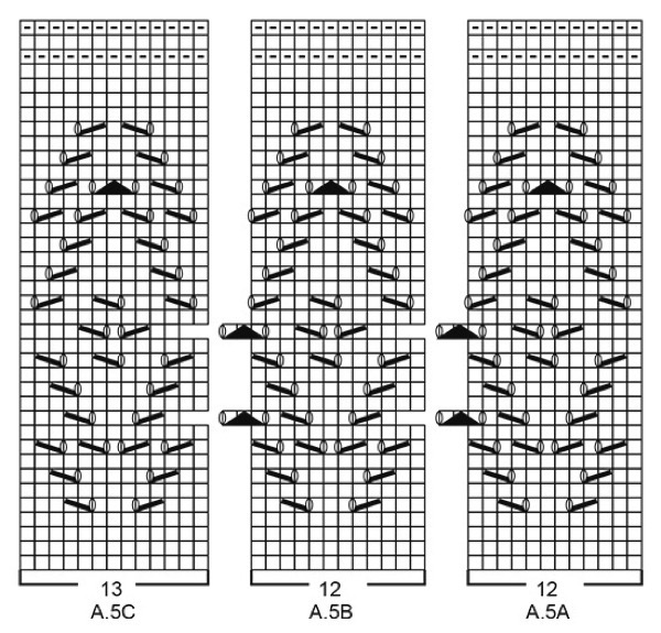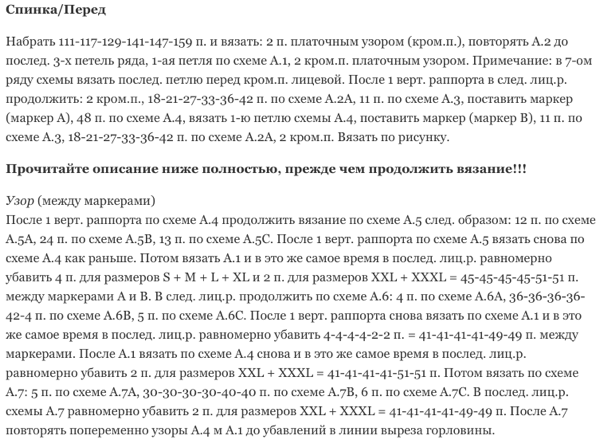 Ажурный и узорчатый он с обеих сторон, спинка и перед вяжутся одинаковыми узорами. Тут предложен полный набор геометрических фантазий: и ромбики, и ломаные линии, и точки, и диагональные полосочки. Расположены они так, что подчёркивают талию, зрительно приподнимают бюст и делают фигурку стройнее, за счёт боковых вертикальных полос.