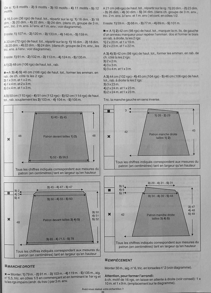 Плотность вязания: узор "рис": 20 п. и 34 р. = 10 x 10 см; схема 1: 5,5 см и 32 р. = 10 х 10 см; схема 2: 9,5 см и 32 р. = 10 х 10 см;