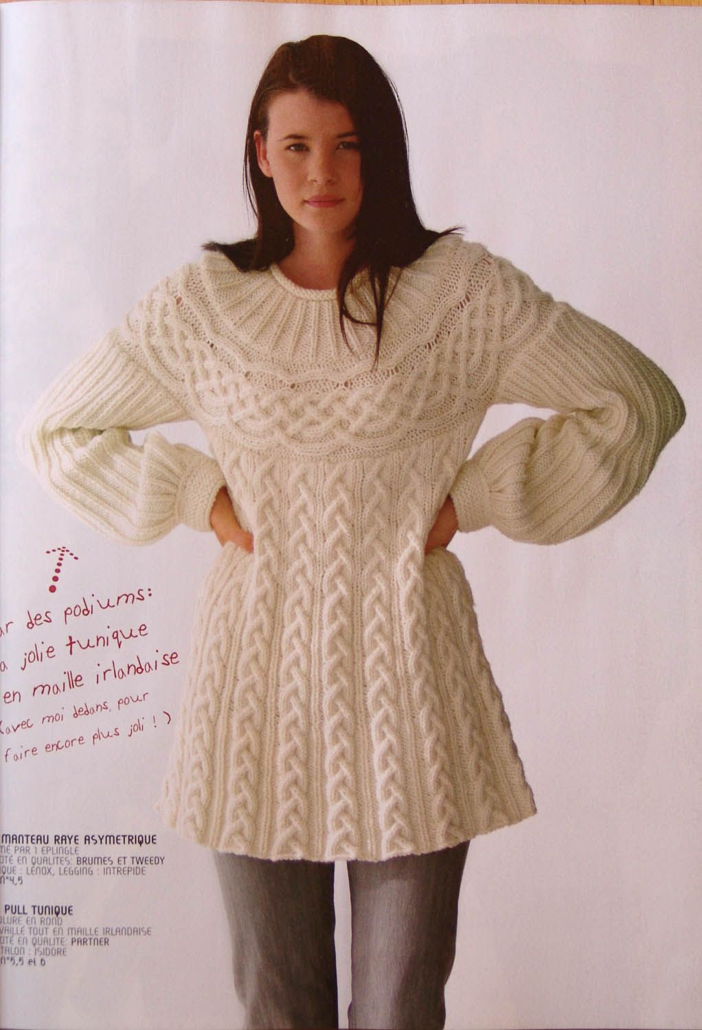 Красивый пуловер с короткими рукавами от Фионы Эллис связан спицами великолепным узором из аранов.