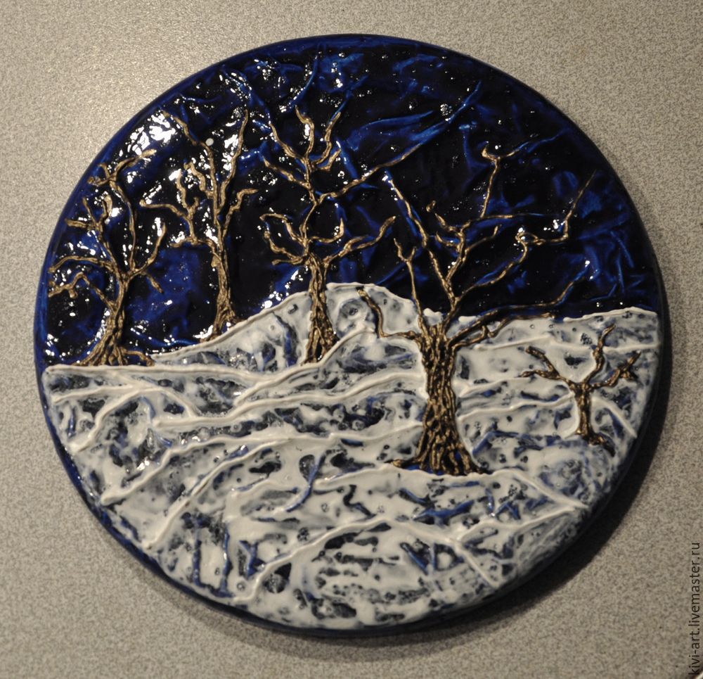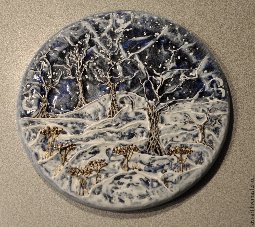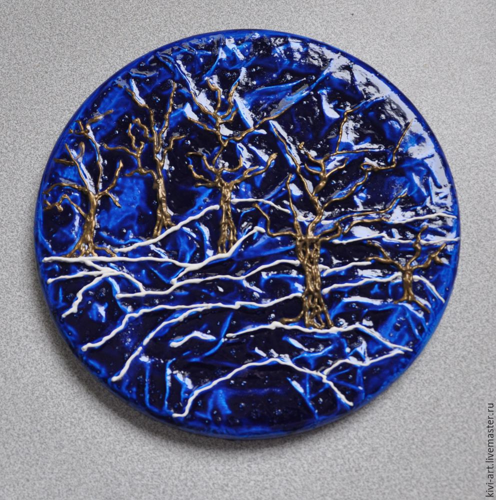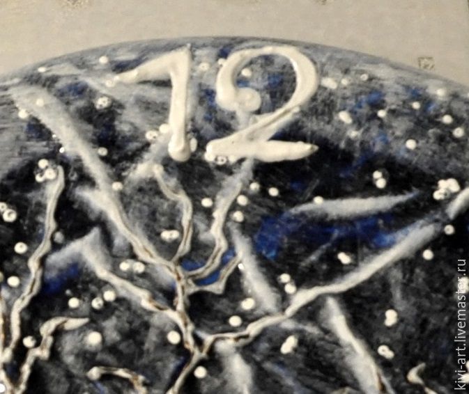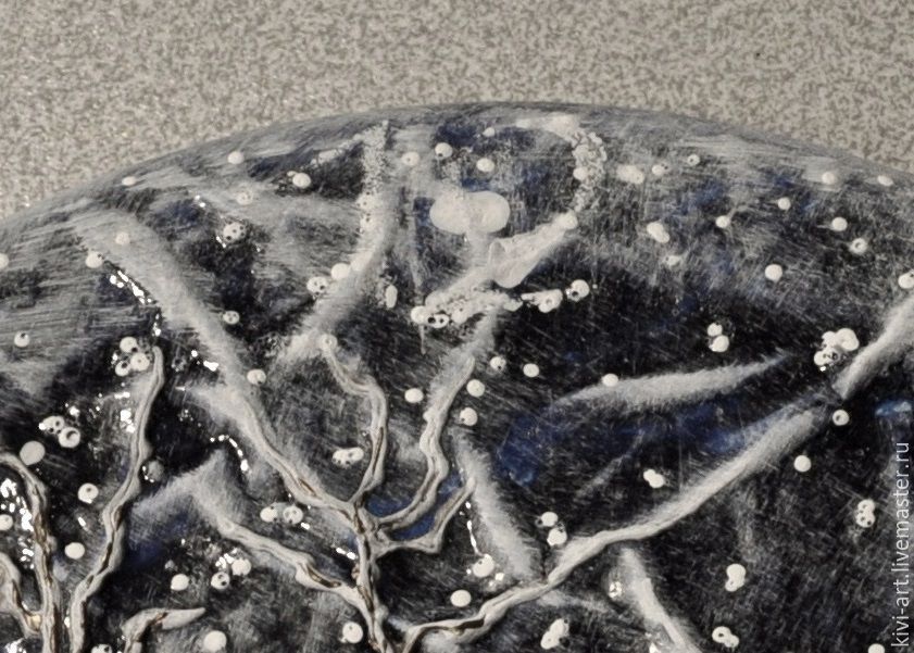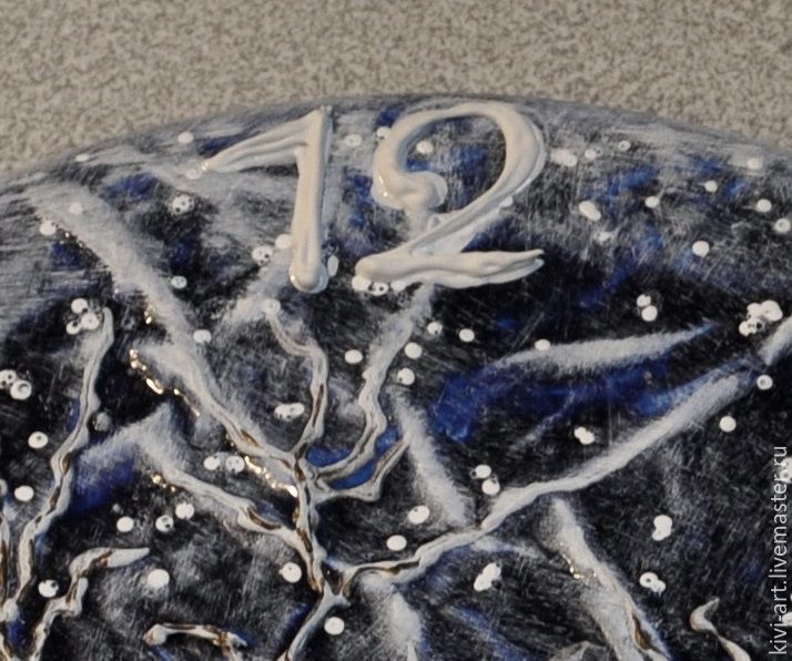 Когда контур подсох, нижнюю часть заготовки — снежные "барханы" я покрыла белой краской для стекла.Так как краска у меня была довольно жидкая, она очень красиво растеклась по нанесённой ранее синей краске.