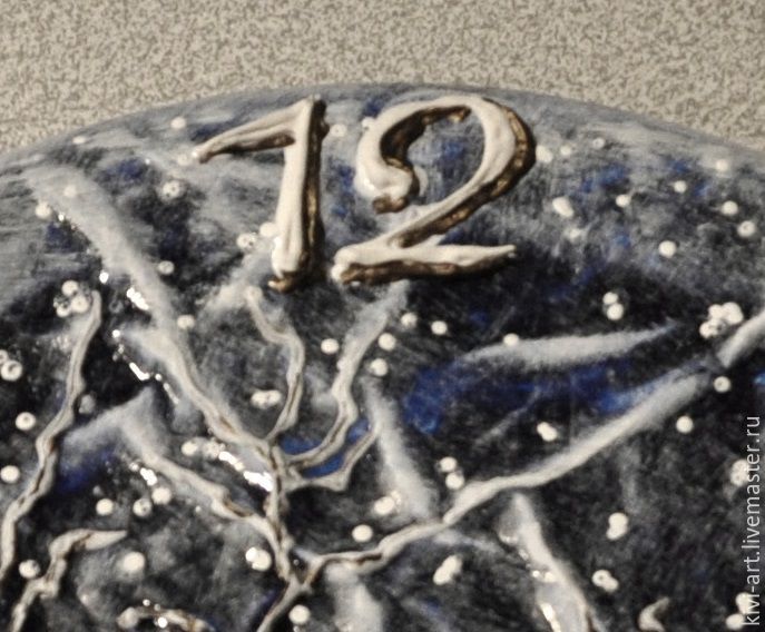 Затем придала цифрам объём с помощью шпатлёвки также по трафарету.