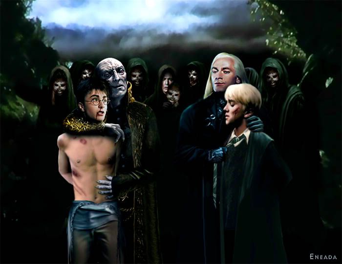 На второй картинке ещё и Люциус с Вольдемортом, на четвертой вообще не знаю кто. Кажется, Северус и Драко.