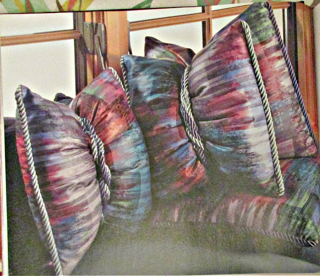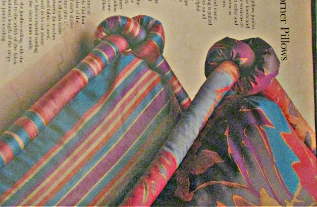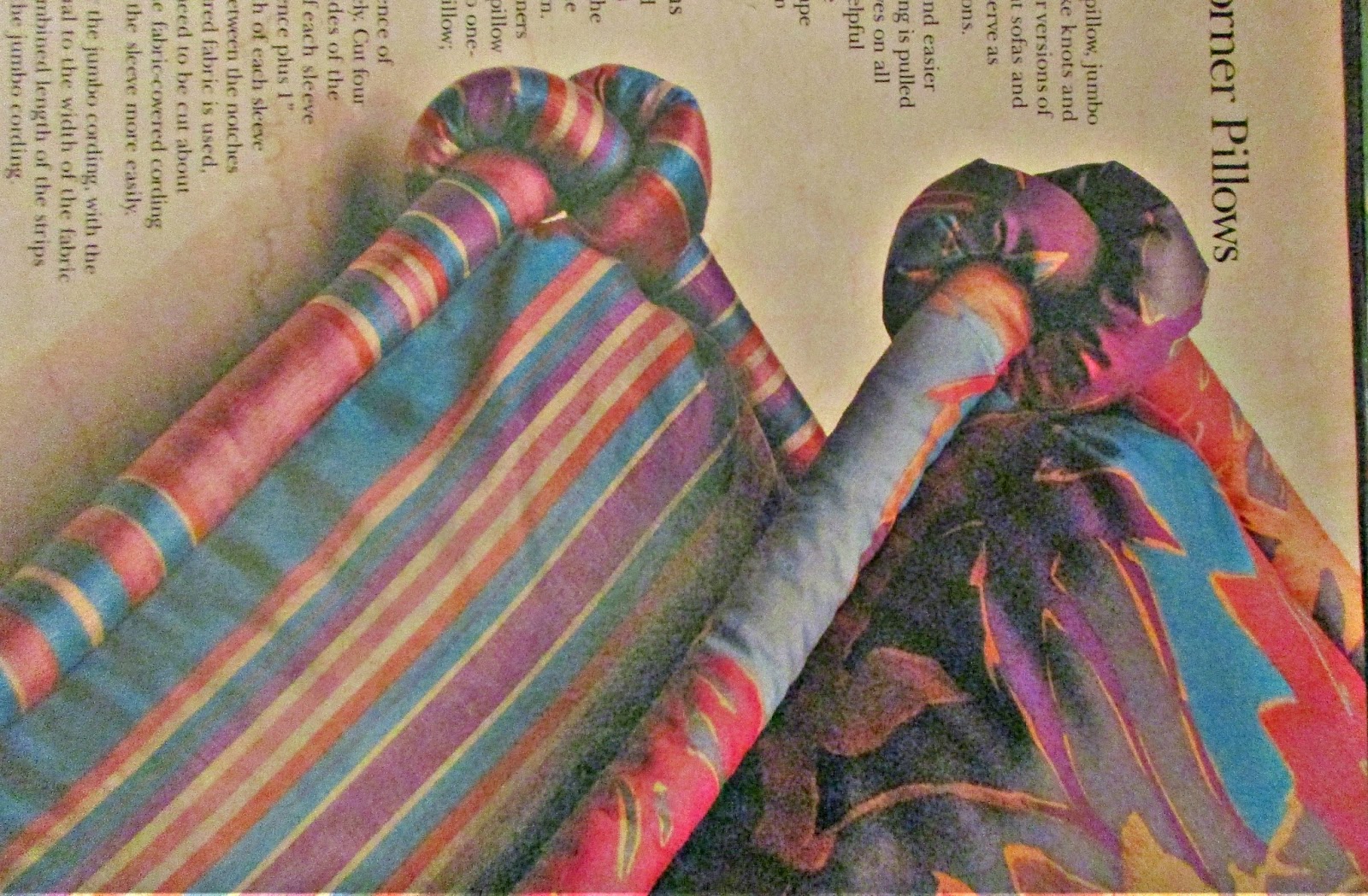 Подушки, отделанные объёмными трубками, переходящими в узлы на углах: