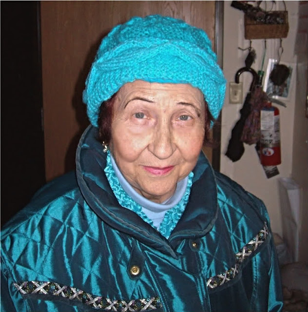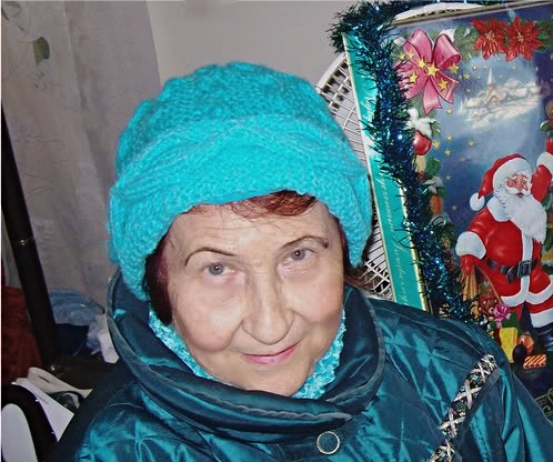 Дело было под Новый Год и бабушка Геля выпендрилась в новой шапчонке тут же, как только я сделала последний стежок и затянула макушку.(Специально вышла на улицу, чтоб показаться в новой шапке. )